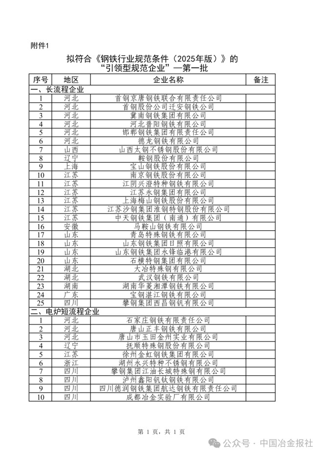 1.擬符合《鋼鐵行業規范條件(2025年版)》的“引領型規范企業”-第一批