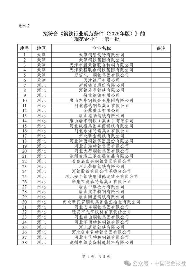 根據《鋼鐵行業規范條件(2025年版)》(工業和信息化部公告2025年第1號,以下簡稱《規范條件》)有關要求,現將擬符合《規范條件》的企業(第一批),予以公示。如有異議,請在公示期內與我們聯系,并提交相關證明材料。